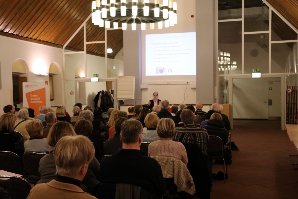 Bürgerstiftung Gerricus, Ökumenische Hospizgruppe Gerresheim und die evangelische Stiftung Gerresheim Gemeinsam hatten Anfang Januar einen Vorsorgeordner mit allen wichtigen Vordrucken zum Thema Lebensende herausgegeben. Schnell wurden ihnen die Ordner aus der Hand gerissen. „Das zeigt, wie wichtig den Menschen das Thema ‚Vorsorge fürs Lebensende treffen‘ ist“, sagt Barbara Krug, Palliativfachfrau und Mitherausgeberin des Ordners. „Wir merken aber auch, dass zum Ausfüllen der Dokumente eine fachkundige Beratung sehr sinnvoll ist“, ergänzt Krug, die sich ehrenamtlich für die Bürgerstiftung Gerricus einsetzt. Deshalb luden die drei Gerresheimer Organisationen gemeinsam mit dem ASG-Bildungsforum und katholische Kirchengemeinde St. Margareta am Mittwoch zu einem Informationsabend ein. Und auch hier war das Interesse wieder sehr hoch: Etwa 100 Bürgerinnen und Bürger waren gekommen und stellten bereits während der Erläuterungen von Sara Ristau und Dr. Susanne Hirsmüller viele Fragen.